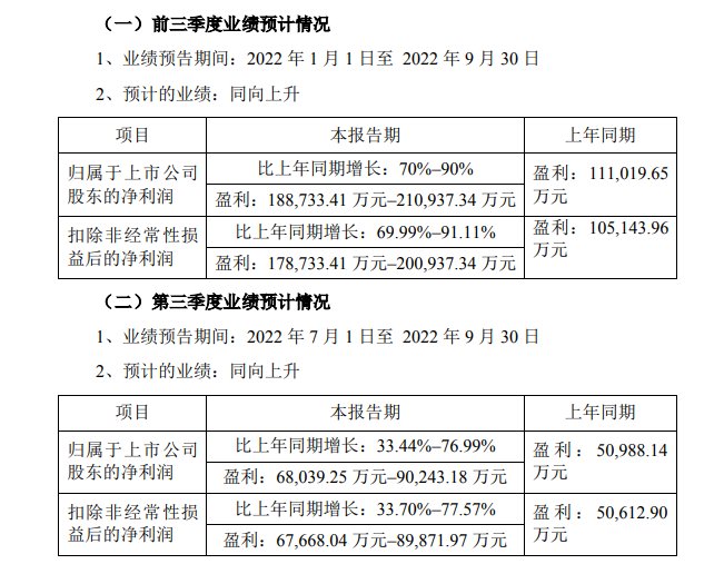 其中,在第三季度,晶盛机电的归母净利润约为6.80亿元-9.02亿元,同比增长约33.44%-76.99%。